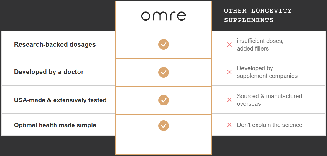 At OMRE, we’re cutting through the noise with trusted medical expertise - delivering a daily longevity boost that is: