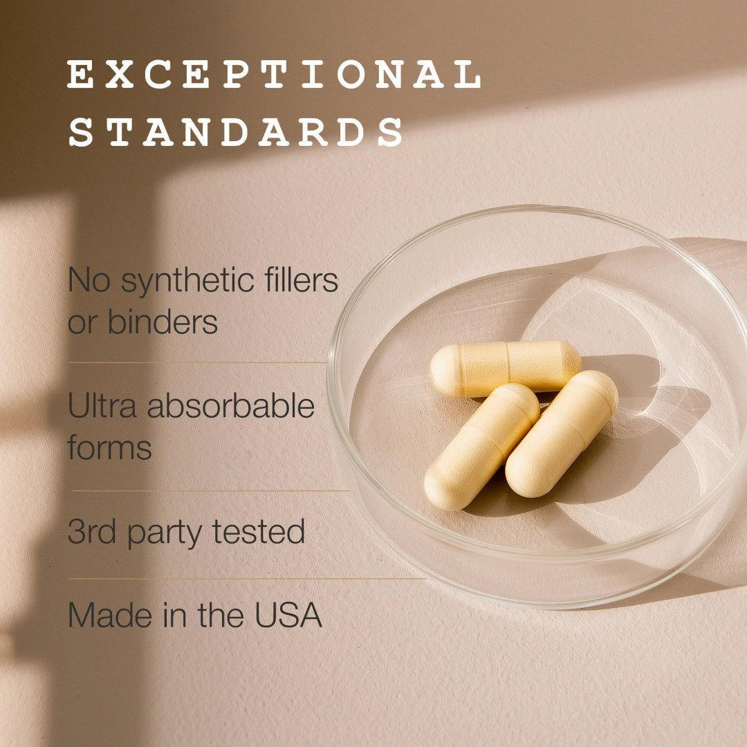 Not all forms of a nutrient are equal. Some you can absorb easily, others you can’t. We go to great lengths to source highly bioavailable and max purity ingredients.